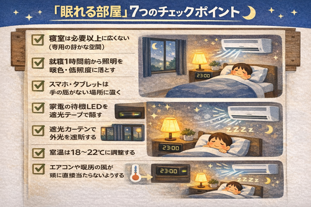 今回のまとめ:「眠れる部屋」7つのチェックポイント